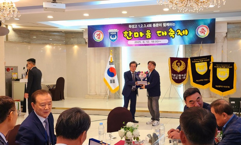 학고 1회~4회 동문 한마음축제 행사 (사진) 페이지 정보 작성자 사무국 (1.♡.204.148) 작성일25-06-13 10:51 조회714회 댓글0건 관련링크 목록 본문 -------------------------- 울산시장, 母校 교장, 총동창회장을 來賓으로 초대한 가운데 4개 기수한마음 축제 행사는 성대하게 거행되었습니다. 이자리에서 학1회 동기회 일동으로김두겸 시장, 울산 제일중학교 교장(모교출신), 이철희 총동창회 회장 (검사출신/재경)등 3명에게 공로패와 감사패를 전달했습니다. 댓글목록 등록된 댓글이 없습니다. 목록