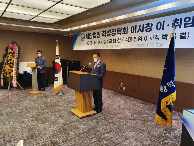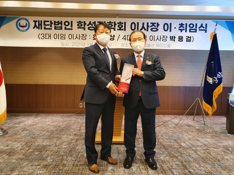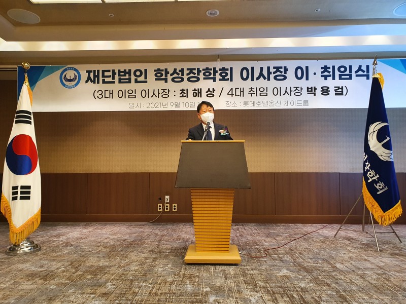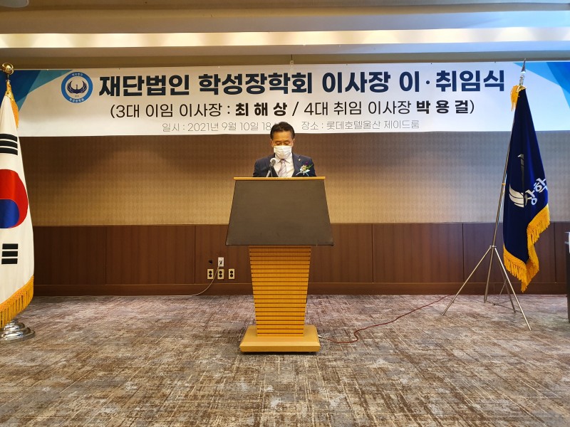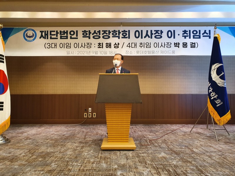 박 이사장은 취임사를 통해 “학성장학회는 지난 10년간 적은 예산과 인력 부족으로 한계도 많았지만 조금씩 성장해 비영리 재단으로서 기반을 갖추게 됐다”며 “대다수 동문들의 희생과 봉사로 모교와 지역사회에 대한 장학사업을 진행했으며, 올해 10주년을 맞아 도약과 재정비가 필요하다”고 밝혔다.