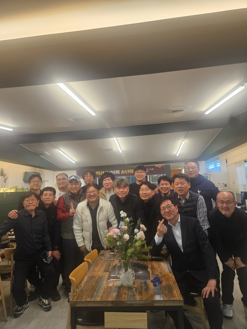 2025년 송년회 행사 사진9 페이지 정보 작성자 사무국 (1.♡.204.148) 작성일25-12-22 13:15 조회215회 댓글0건 관련링크 목록 본문 2025년 송년회 행사 12월 19일 - 20회 기수 송년회 총동문회 (참석) 2025년 : 17회 정현우 사무총장2026년 : 18회 박준혁 사무총장 댓글목록 등록된 댓글이 없습니다. 목록