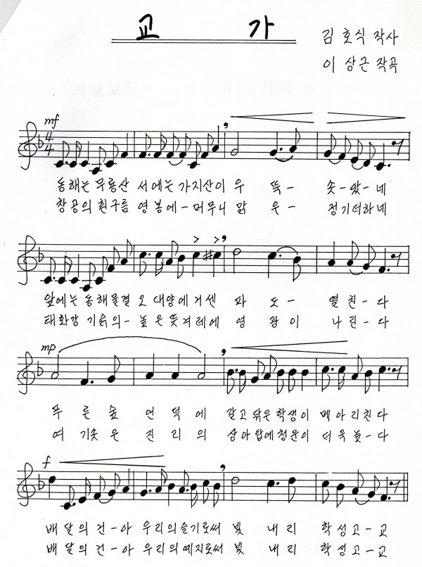 수기로 쓰여진 교가악보입니다..