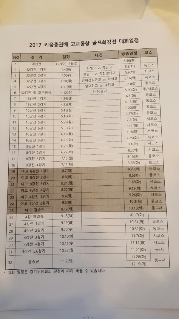 2017년 4월10일 상주블루원CC 에서 치러진 키움증권배 고교골프 최강전에서