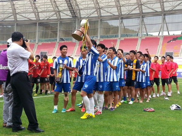전 후반을 2대2 무승부로 승패를 내지못하고 연장전 또한 무승부로 경기를 마친 두 팀은 승부차기로 승패를 겨뤄 학성고가 네골을 넣어 두골을 넣은 진주고를 4대2로 제압하고 우승했습니다.
