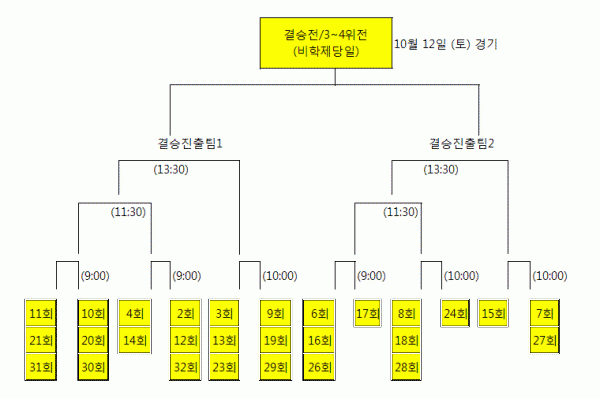 3-4위 전은 (비학제 당일 시합) - 9회 19회 29회(연합) : 6회 16회 26회(연합) = 시합 함