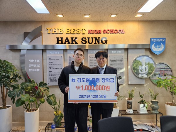 학성고등학교 3학년5반 류현승 군에게 장학금 일백만원을