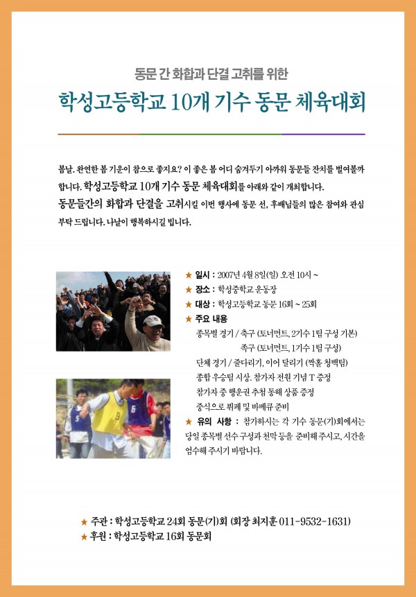 10개기수 체육대회 페이지 정보 작성자 사무국(0) 작성일07-04-03 11:31 조회6,129회 댓글1건 관련링크 목록 본문 많은 참석바랍니다. 댓글목록 이상수(08)님의 댓글 이상수(08) 작성일 07-04-03 15:46 내용이 열리지 않습니다. 내용이 열리지 않습니다. 목록