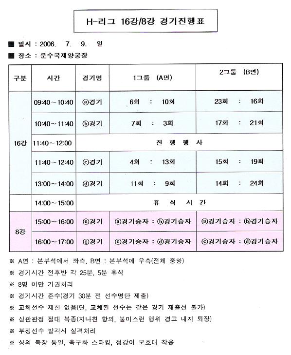 H-리그(16/8강 경기진행표)