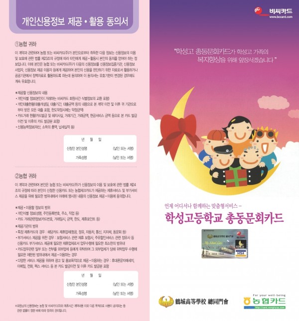 농협 울산지역본부는 BC카드와 공동으로 학성고 로고와 ‘학성고등학교 총동문회’라는 문구가 디자인된 카드를 제작해 학성고 총동문회 홈페이지 등을 통해 회원을 모집하게 된다. <br><br>